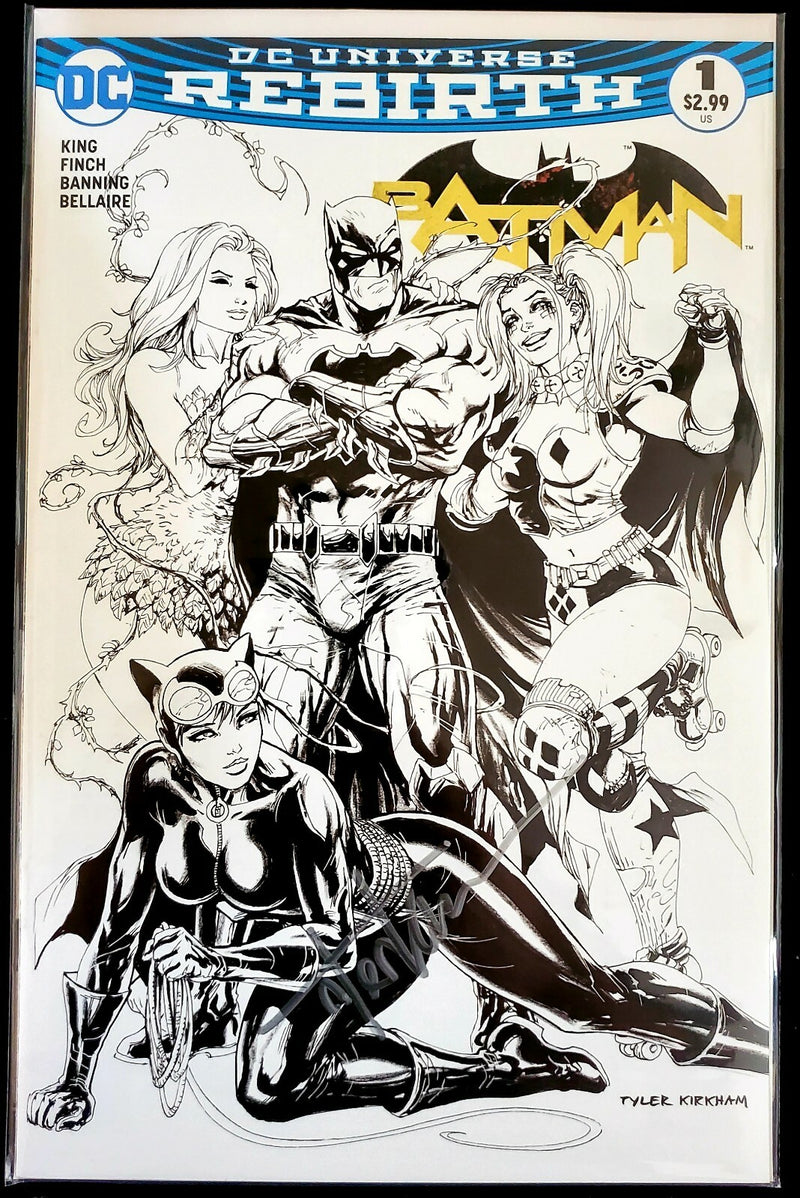 🦇BATMAN DC REBIRTH #1 🦇 SIGNED BY KIRKHAM🔥 Hastings B&W VARIANT.