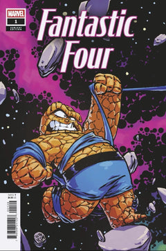 The product is a variant cover of the comic book "Fantastic Four #1" featuring artwork by Skottie Young. This single-issue comic is part of the Marvel Comics universe and is written by Ryan North with art by Humberto Ramos. The cover variant is a 1:25 virgin baby variant, marking its rarity and collectibility among fans of the Fantastic Four superhero team. Published in 2025, this modern-age comic is intended for a general audience and is a must-have for comic book enthusiasts looking to add a unique and visually appealing piece to your collection.