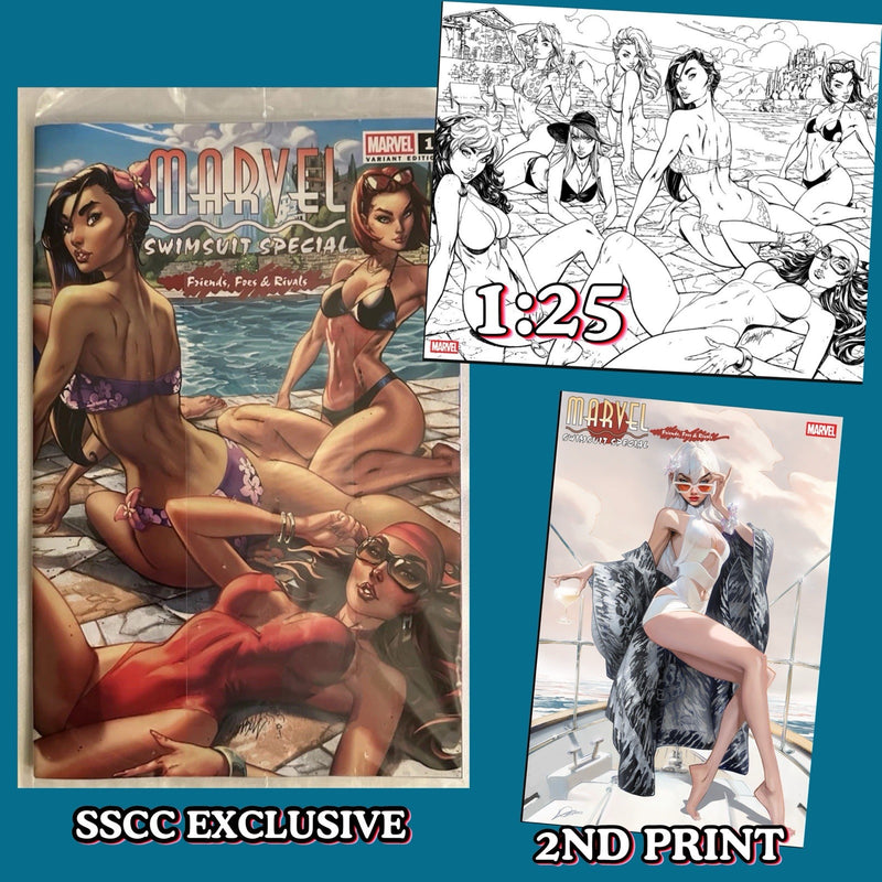 Note: Buy the MARVEL SWIMSUIT SPECIAL: FRIENDS, FOES & RIVALS #1 J. SCOTT CAMPBELL RATIO VIRGIN 2ND PRINTING VARIANT [1:25] and SDCC EXCLUSIVE and get a FREE trade copy.